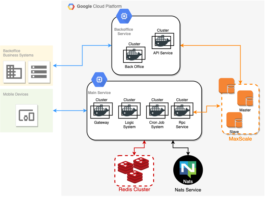 Divided into api service、main service、database service